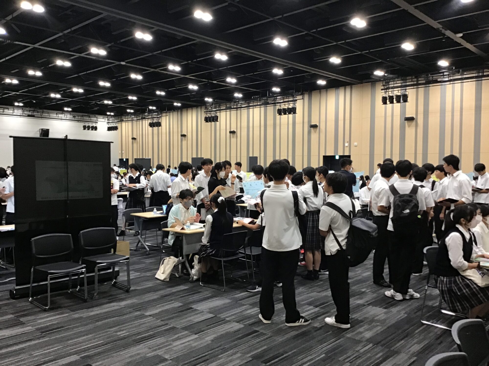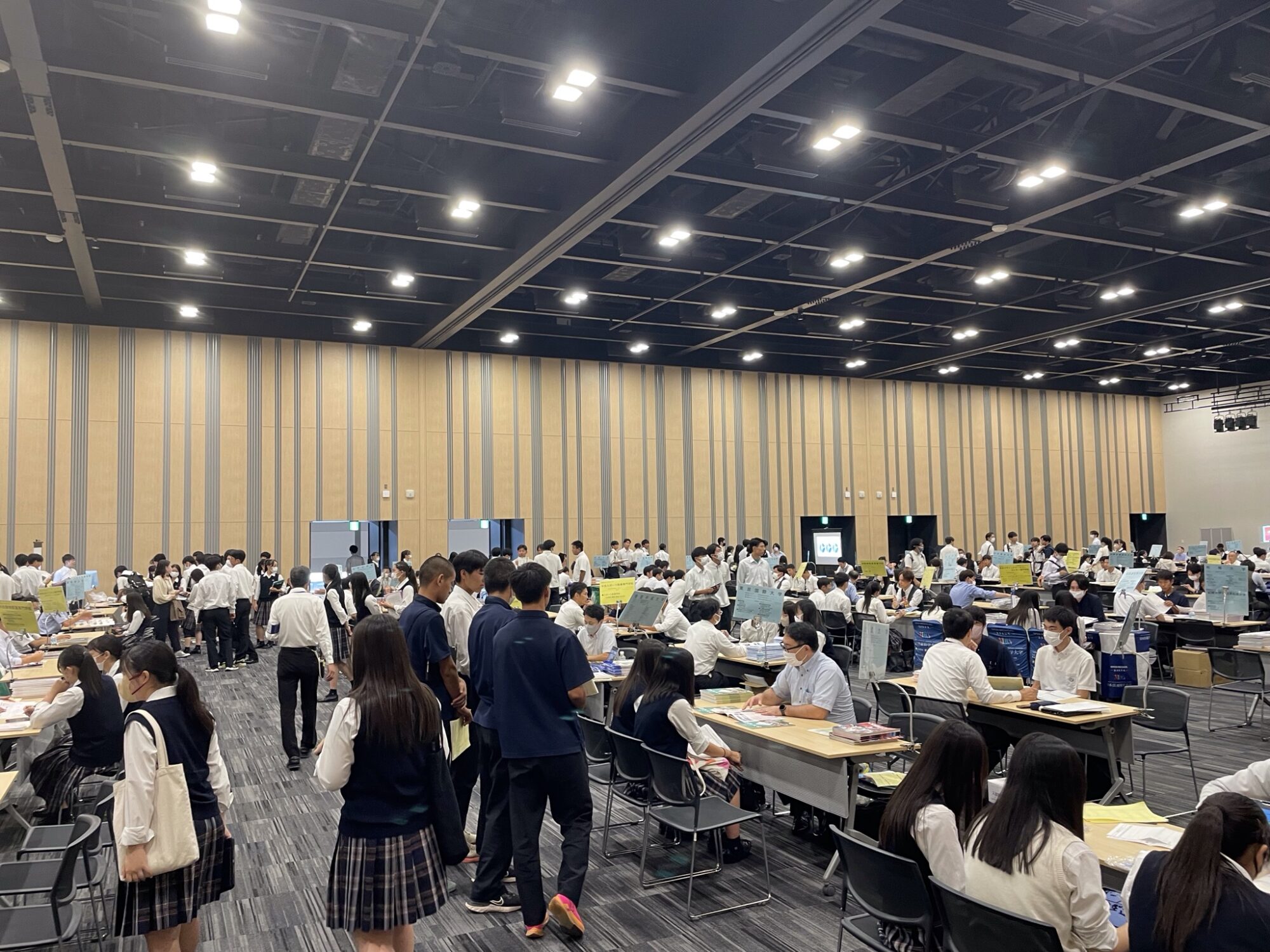 9月27日(水)にGメッセのメインホールにて進路ガイダンスが行われました。2学年の生徒が午前中はⅡコース発展クラスとⅢコースが、午後はⅠコースとⅡコース標準の生徒がそれぞれ参加しました。生徒はメインホールに100以上設けられた県内外の大学、専門学校のブースに足を運び、各学校のパンフレットや募集要項を受け取り、担当者から特徴や入試方式のお話を聞き自分の進学に必要な情報を集めることができました。