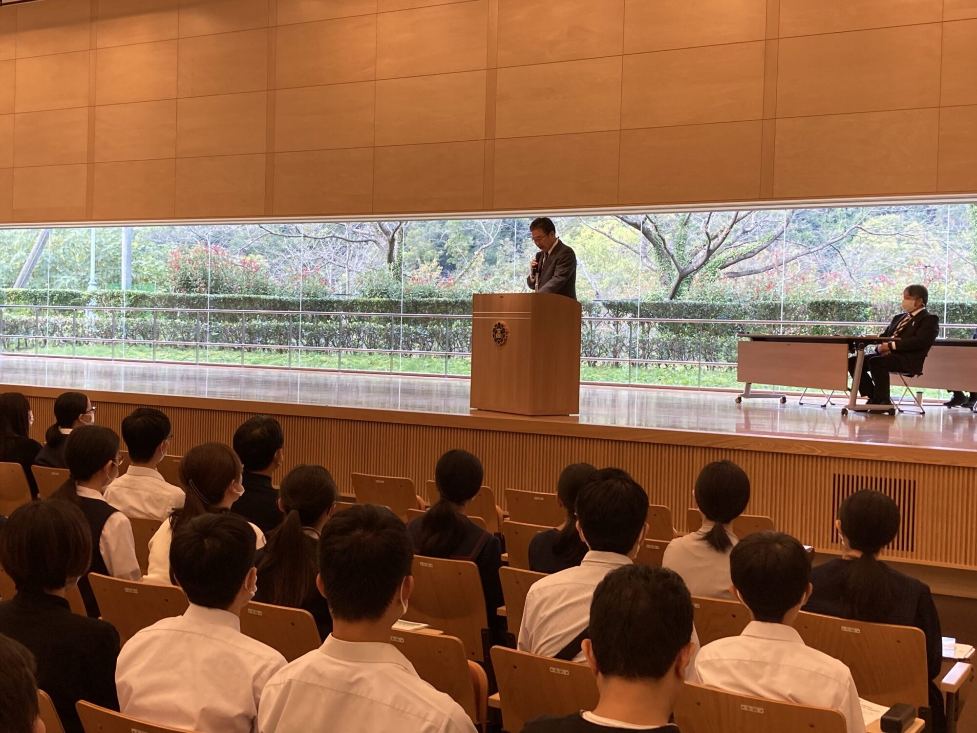 全体説明会では、校長挨拶に続き、進路指導部の担当より「学校説明と学習指導・進路指導の説明」、入試広報部の担当より「入試概要と前年度入試結果の説明、インターネット出願についての説明」をそれぞれ行いました。