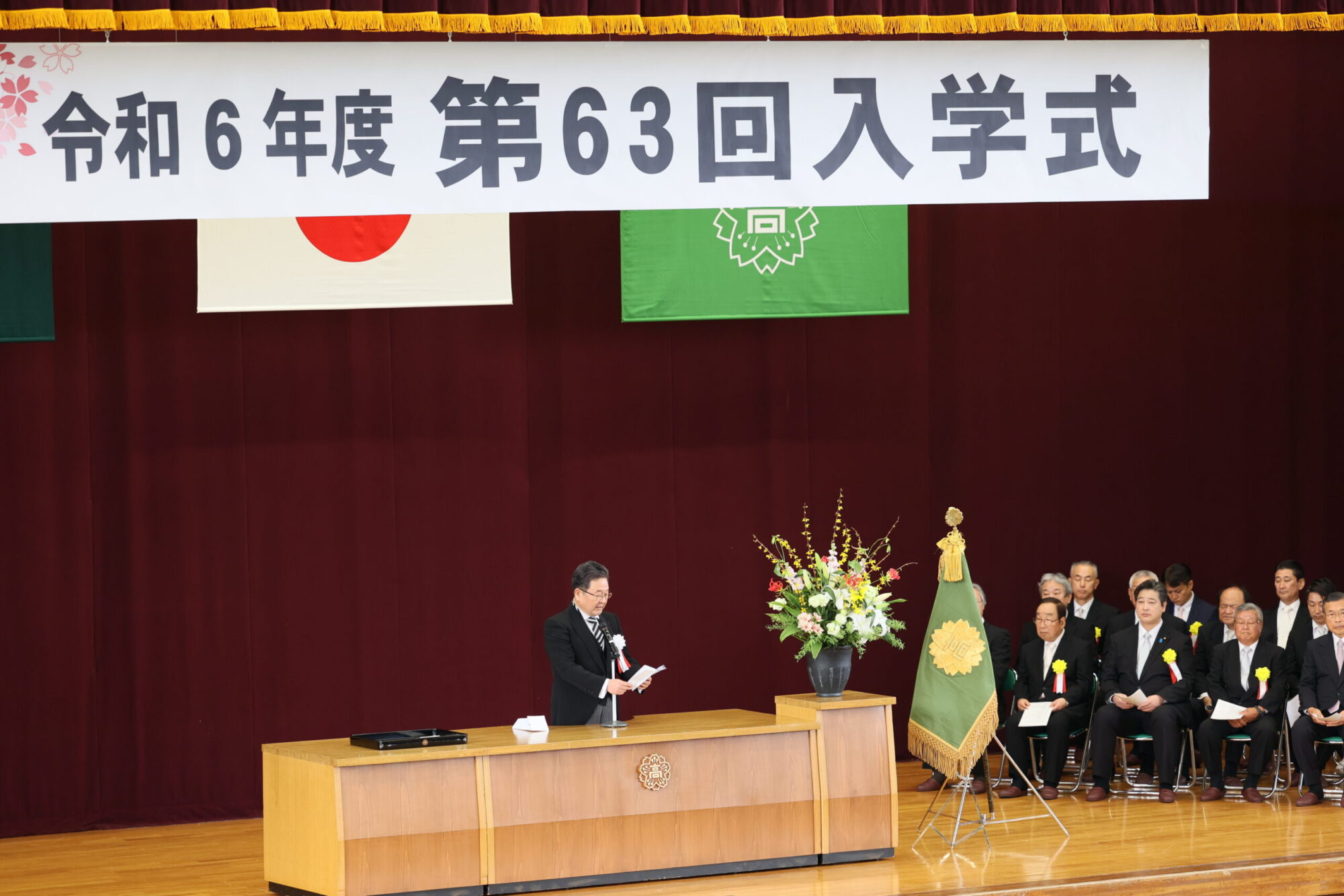 4月7日(日)に本校体育館メインアリーナにおいて第63回入学式を挙行しました。改めまして、新入生ならびに保護者の皆様、ご入学おめでとうございます。