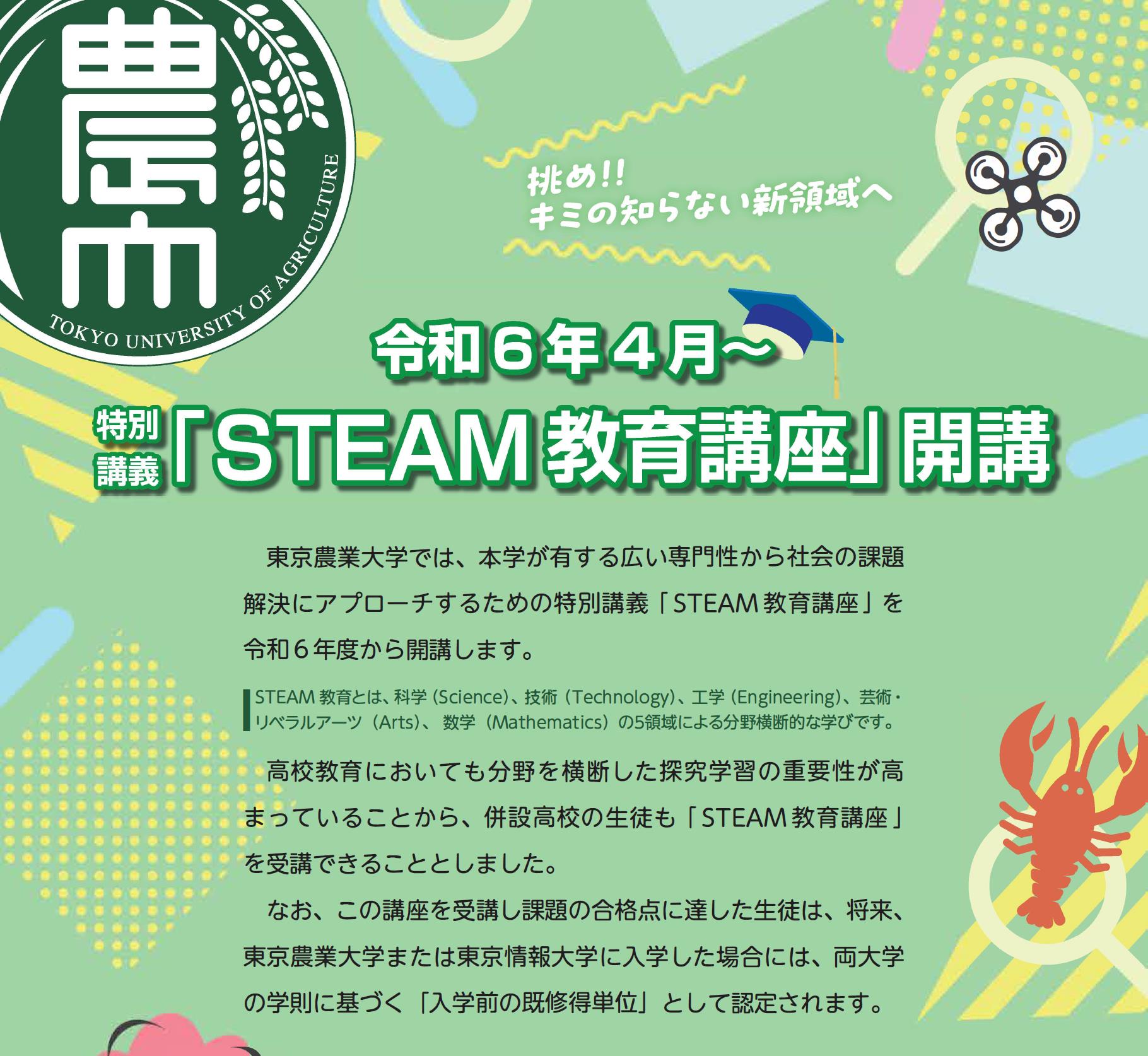大学の学問領域へ!併設高校の生徒に東京農大流STEAM教育を開講! ~東京農業大学「STEAM教育講座」今年度から始動~