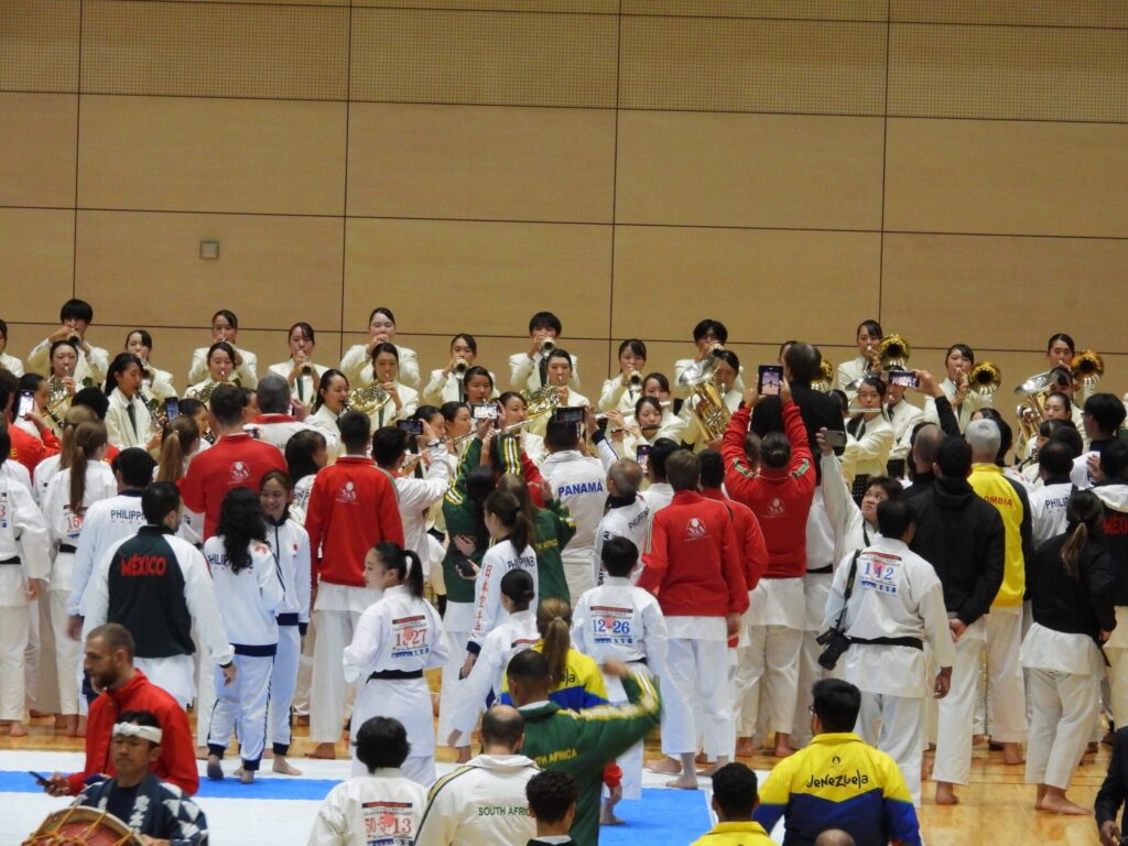 10月27日(日)に高崎アリーナで行われた「船越義珍杯 第16回 世界空手道選手権大会」において、本校吹奏楽部が式典演奏をさせていただきました。