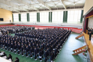 4月8日(火)に本校体育館メインアリーナにおいて第64回入学式を挙行しました。改めまして、新入生ならびに保護者の皆様、ご入学おめでとうございます。