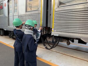 日常では立ち入ることのできない整備中の列車内や、鉄道部品の整備過程を間近で見学させていただき、公共交通を支える様々な仕事について理解を深めることができました。実際に鉄道やバス事業に関わる方々の話や仕事に触れたことによって、公共交通に対する興味関心を高め、今後の進路選択に活かしてほしいと感じています。