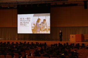 3時間目には、本校情報科の教諭より「生徒対象生成AI講習」が実施されました。生成AIの特徴や利用上の注意事項、本校のガイドラインについての説明がありました。今後は本校でも生徒が自分のiPadを用いて生成AIを利用できるようになります。生成AIを有効に活用できるスキルを身につけることは、これからの社会を生き抜くための大きな力となります。生徒たちには、技術を正しく理解し、主体的に使いこなす力を養っていってほしいと願っています。