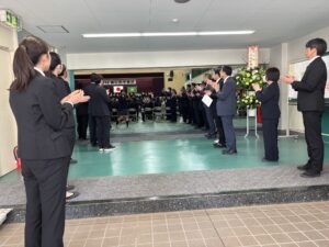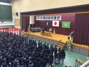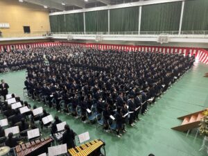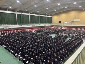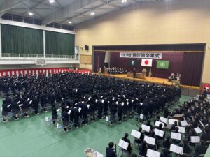 式次第は、卒業証書授与、賞品および賞状授与、校長式辞、理事長祝辞、在校生送辞、卒業生答辞の順に進み、本日をもって522名の生徒が晴れて卒業いたしました。生徒一人ひとりが目標を持ち、3年間にわたり学習や部活動に真摯に取り組んできた成果が感じられる、誇りある門出の日となりました。