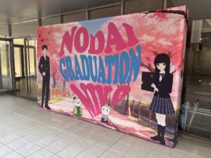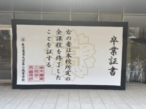 卒業式終了後には、各クラスの代表生徒が壇上に上がり、担任の先生方へ花束を贈呈するサプライズ企画も行われました。また、卒業記念品として「卒業証書をデザインしたバックボード」が贈られ、多くの生徒と保護者の皆さまが記念撮影を楽しむ姿が見られました。