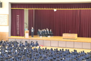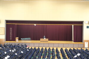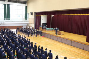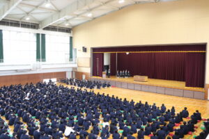 始業式終了後には新クラスが発表され、各クラスでホームルームを行いました。今年度も生徒一人ひとりの目標の実現に向けて、日々の授業や部活動に取り組んでほしいと思います。