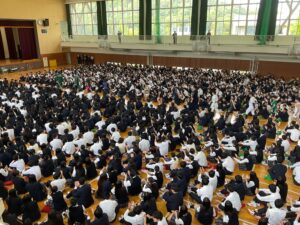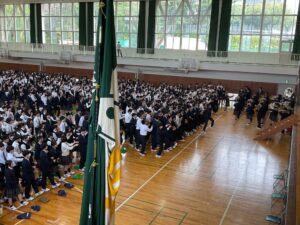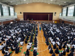 4月22日(水)の放課後に本校体育館メインアリーナにおいて、高校総体に向けて運動部壮行会を開催しました。